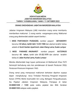Jabatan Imigresen Malaysia WP Kuala Lumpur Kompleks Kementerian Dalam Negeri KDN No 69 Jalan Sri Hartamas 1.